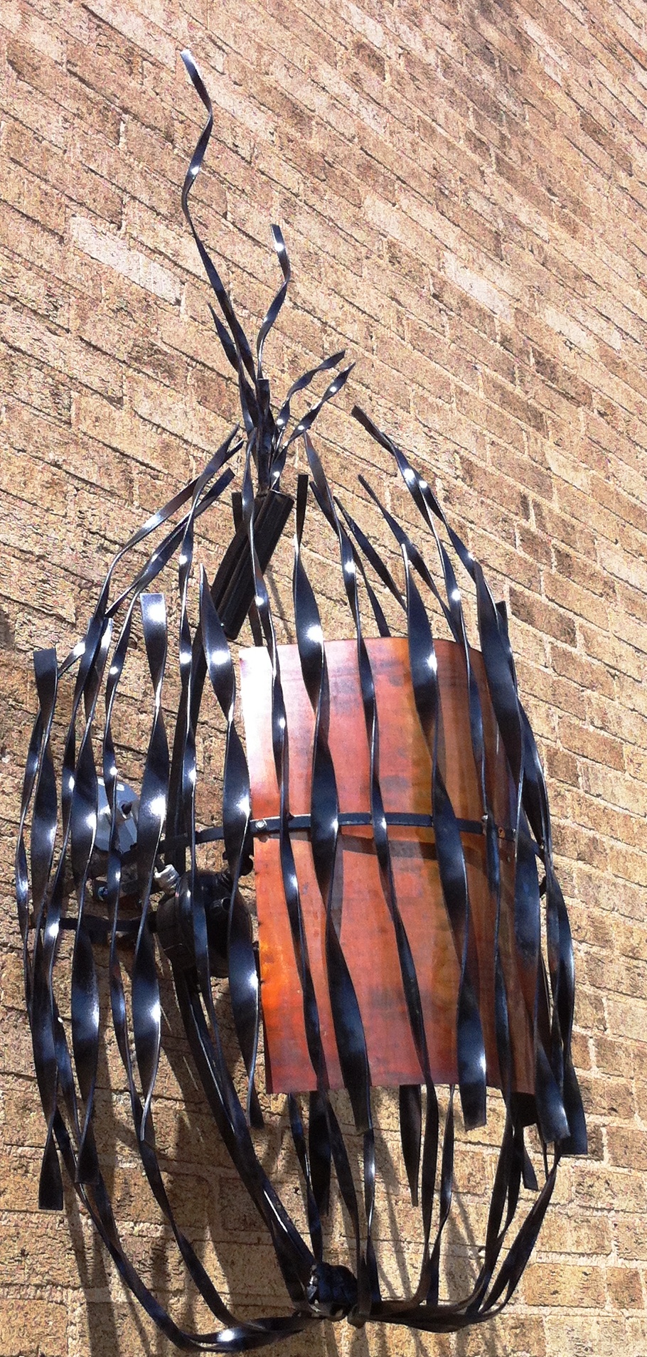 Today’s Architeaser is below. It features both a copper shield to deflect and focus the light as well as a wrought iron cage.