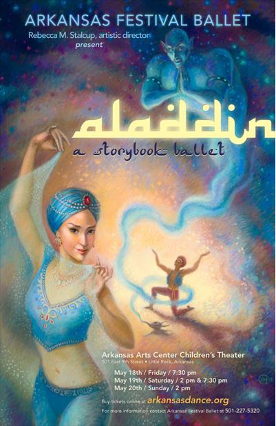 Arkansas Festival Ballet presents a full-length story ballet Aladdin this weekend. Performances began last night and continue today at 2pm and 7:30pm as well as Sunday at 2pm. This will conclude the twelfth season for Arkansas Festival Ballet.