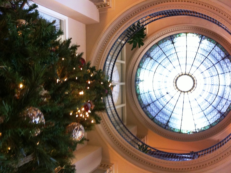 IMG_3715 Published December 17, 2012 at 800 × 598 in Little Rock Tree Week – City Hall Looking up to the Tiffany stain glass in Little Rock City Hall.
