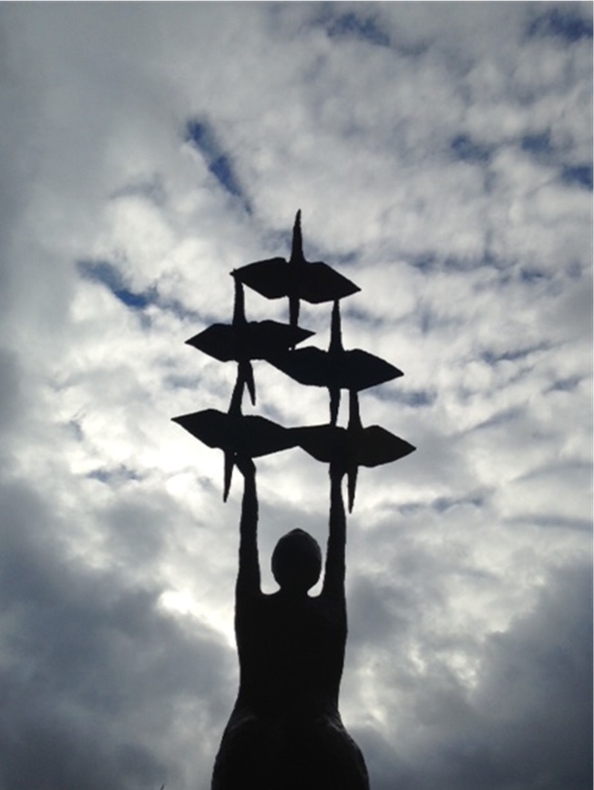 0202Peace Published February 1, 2015 at 652 × 867 in Shadows for Groundhog Day Lori Acott’s “Peace” sculpture located at 2nd and Main Streets