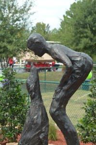In 2015, the Little Rock Animal Village unveiled Lorri Acott’s WHO RESCUED WHO. Located at the entrance to the Little Rock Animal Village, it depicts a person and dog looking at each other. They are sharing a bond of respect, admiration and love.