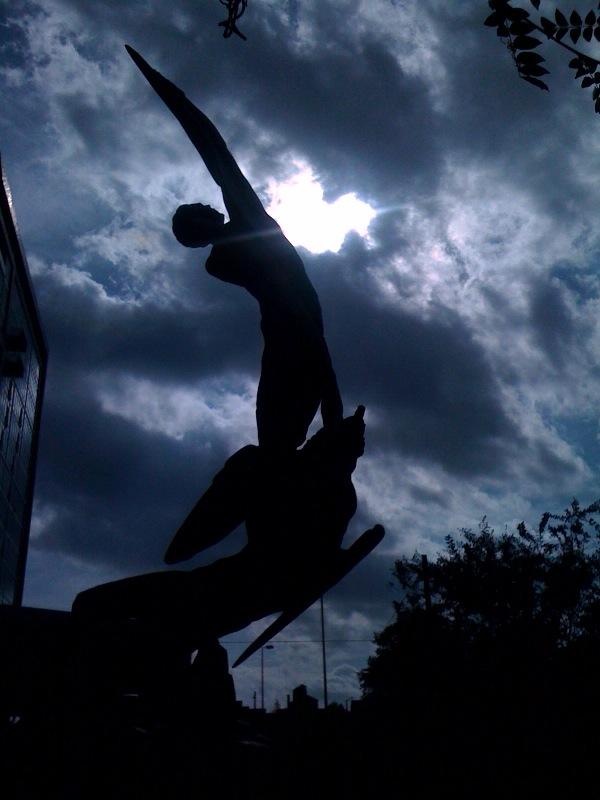 Connecting the four dancing couples is a weather vane which forms a canopy. Overseeing everything are birds perched atop a corner of HAM’s gallery building.