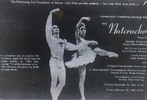 For those who did not sit at home watching TV, at Robinson Auditorium on December 19 and 20, 1968, the nascent Little Rock Civic Ballet (a forerunner to today’s Ballet Arkansas) presented its first production of THE NUTCRACKER.