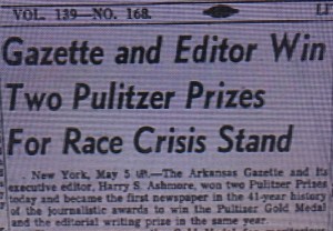 On May 5, 1958, it was announced that the Arkansas Gazette had received two Pulitzer Prizes. These were for the coverage of the 1957 integration (or lack thereof) at Little Rock Central High School.