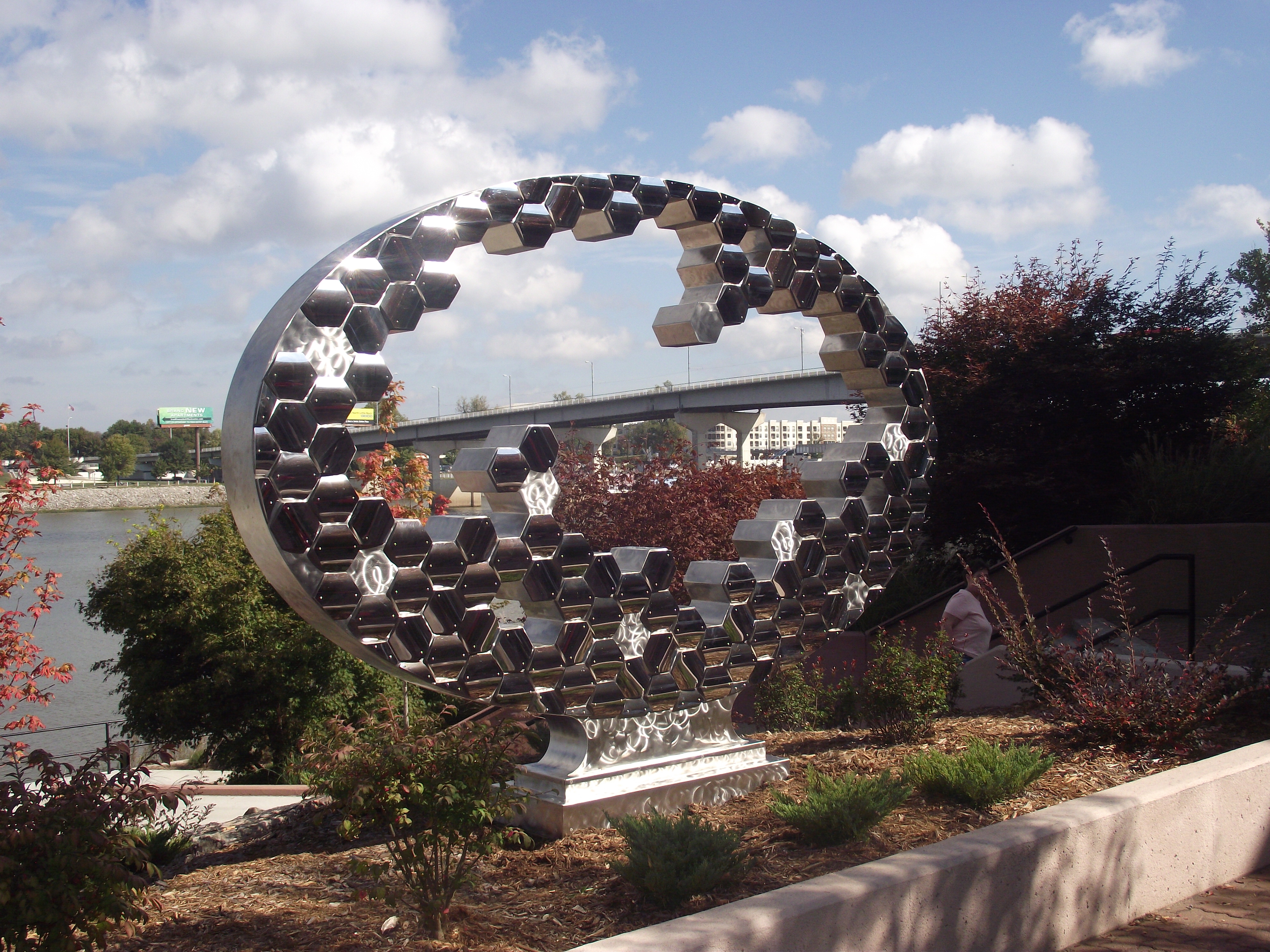 “I was trying to create a way for Little Rock to see itself  which lead to the idea of reflections. On one side, it has a reflection as a single piece. It represents the community and how it works as a whole. On the other side, it is broken up into individual pieces and that represents the individuals of the community and how they work together to make it work.”