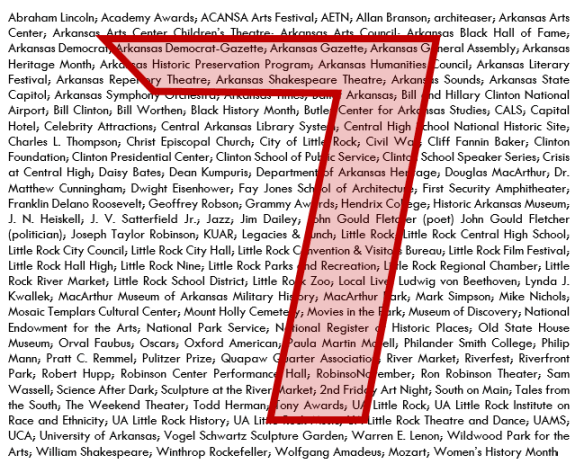 It was amazing. I would normally sit down between the 10th and 15th of a month and start mapping out the next month’s entries. Often that first look at the month would see enormous gaps. I’d wonder if THIS would be the month I would not have much to say. But then, each month, it would fill up. There were Clinton School speakers, Oxford American concerts, CALS Ron Robinson Theater offerings, the Rep, the Symphony, the Arts Center, the Museum of Discovery, etc., etc., etc. Even this week, as I was working on the final entries, I kept coming up with additional things to add to these last few days.