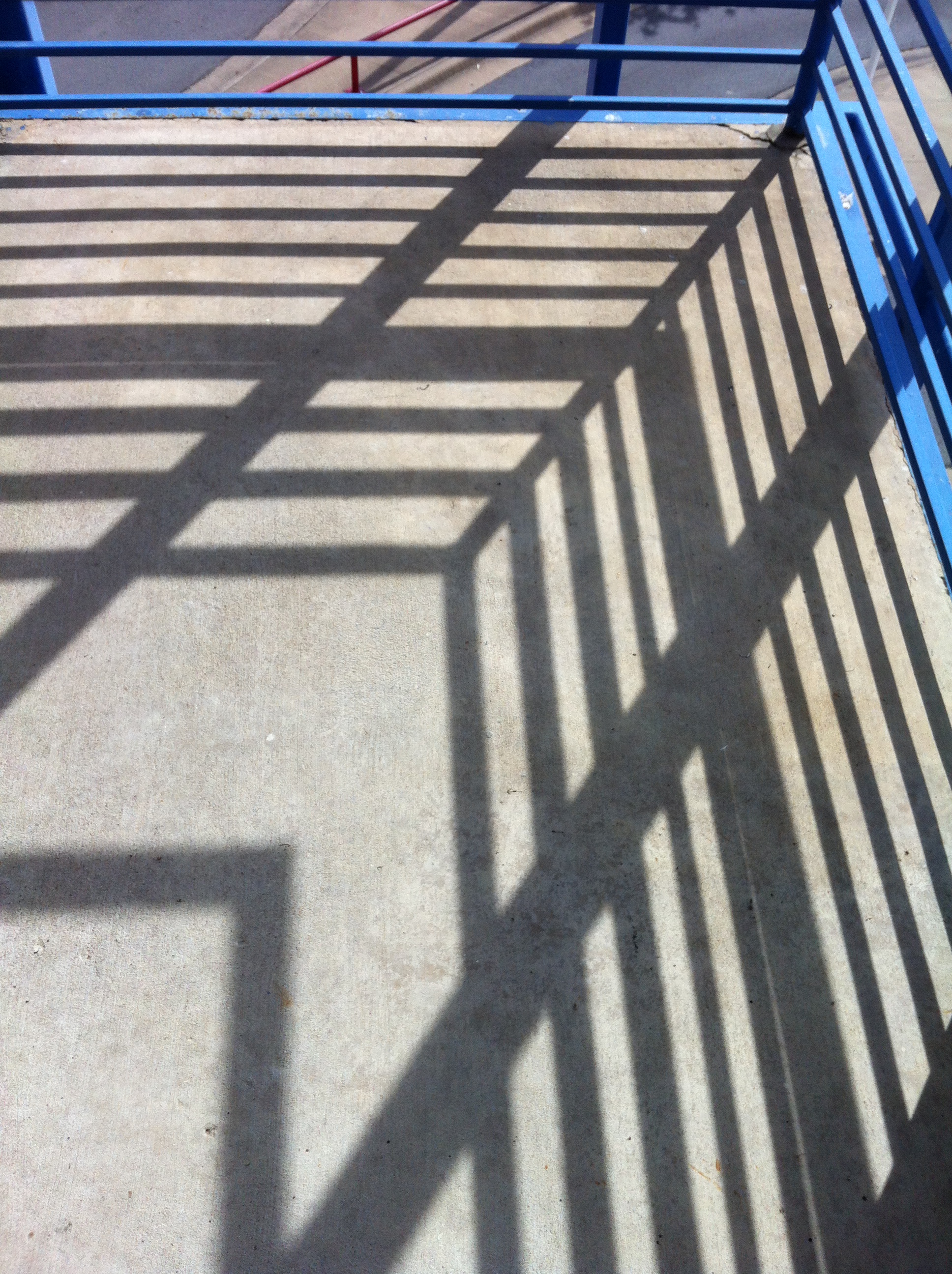 Yesterday’s Architeaser was the shadows cast by a wrought iron fence along Main Street. Two sets of street lights created competing shadows from the same fence which caused a hatchwork pattern to appear.