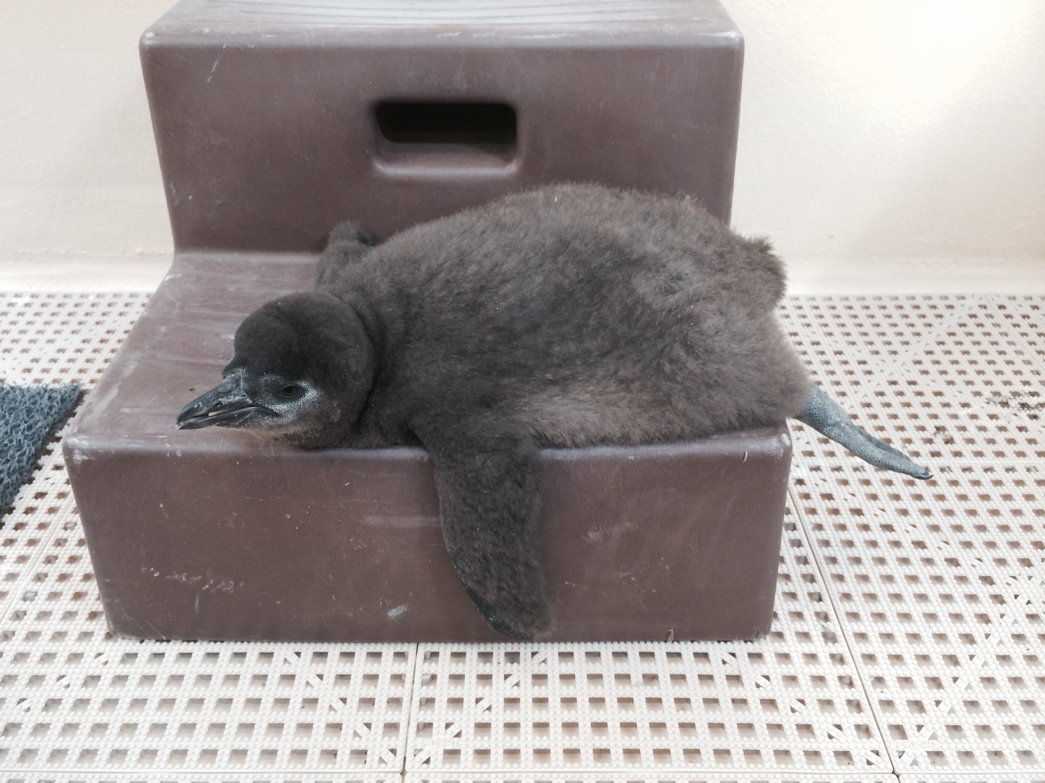For now, the chick will be visible through the conservation room window of the Penguin Pointe exhibit. It will join the rest of the colony when it’s about 3 months old and big enough to be around adult penguins.