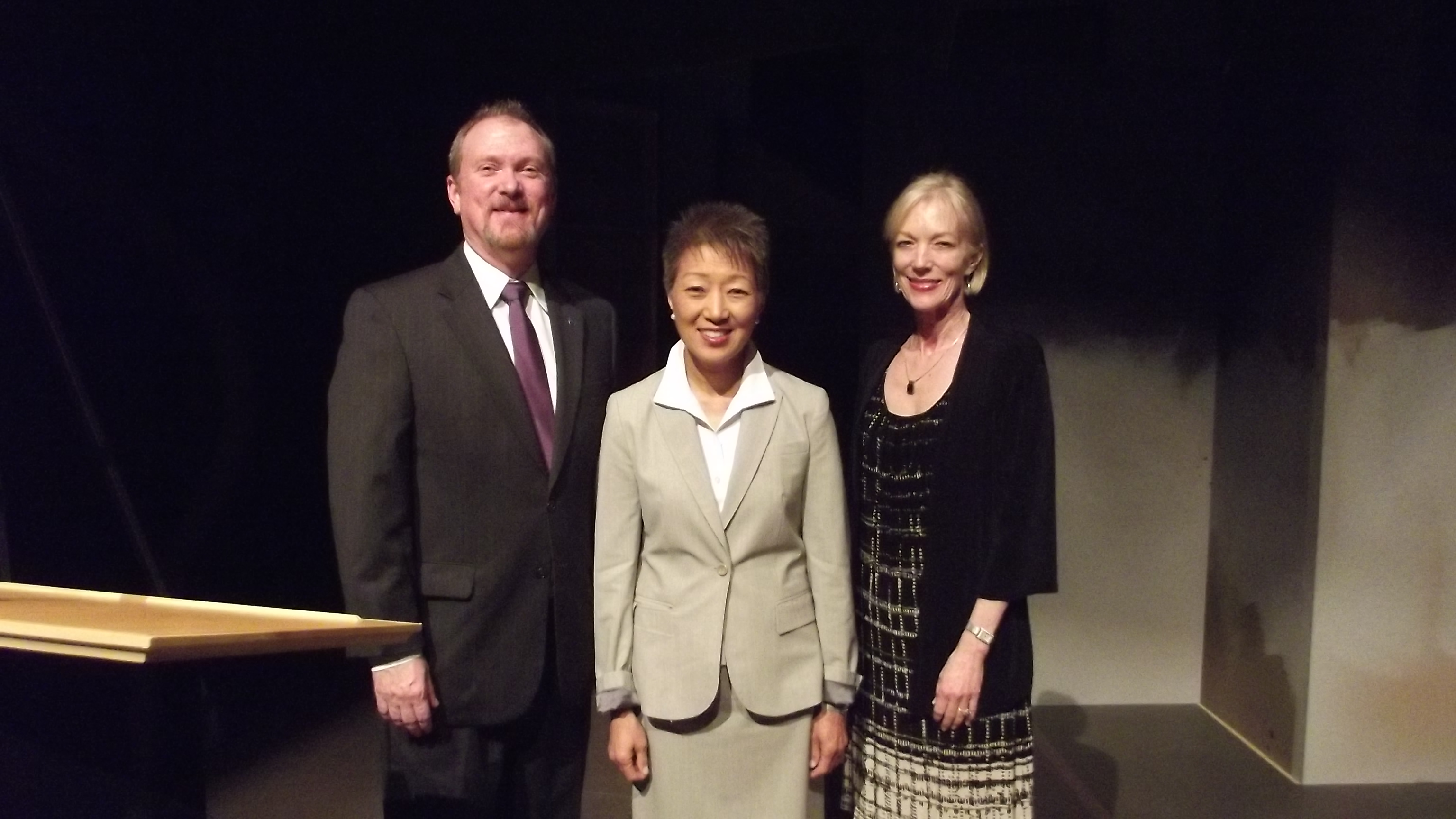 The Rep's Bob Hupp and Catherine Hughes flank NEA Chair Jane Chu