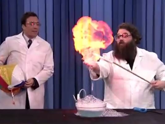 mod delaneyThe Tonight Show with Kevin Delaney. Because Jimmy Fallon is really just a big kid at heart, he wanted to include periodic “cool” science experiments when he took over the “Tonight Show.”  After being contacted by a producer of Fallon’s show and an audition process, the Museum of Discovery’s Kevin Delaney was booked to appear.  He debuted on May 5 performing experiment with Fallon and returned on November 7. When not a guest of NBC, Delaney performs the same types of “Awesome Science” experiments for tens of thousands of children and adults at the Museum of Discovery.