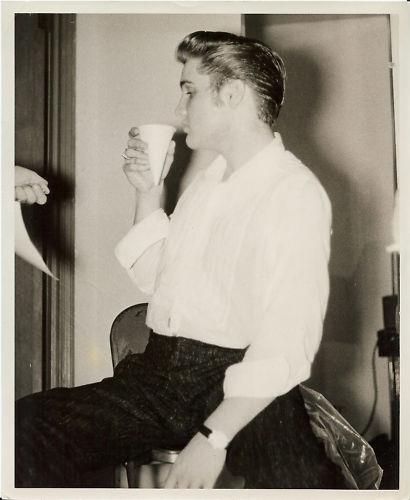 About 30 minutes late, due to a missed flight, Elvis appeared on stage in a purple blazer and started singing “Heartbreak Hotel.” The crowd rushed the stage. Little Rock police officers were able to control them eventually and get the teenagers back to their seats. While the crowd was impressed, the police officers were less so. One of the patrolmen told the Arkansas Gazette reporter: “I wouldn’t know him if I saw him. And I wouldn’t be here unless I was being paid.”
